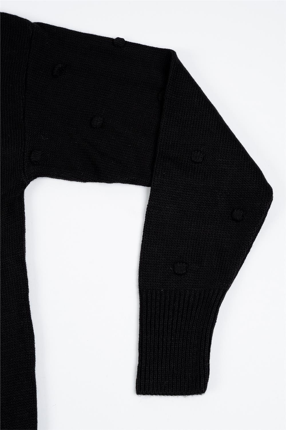 Kadın Siyah Boğazlı Kabartma Noktalı Uzun Kollu Triko Elbise